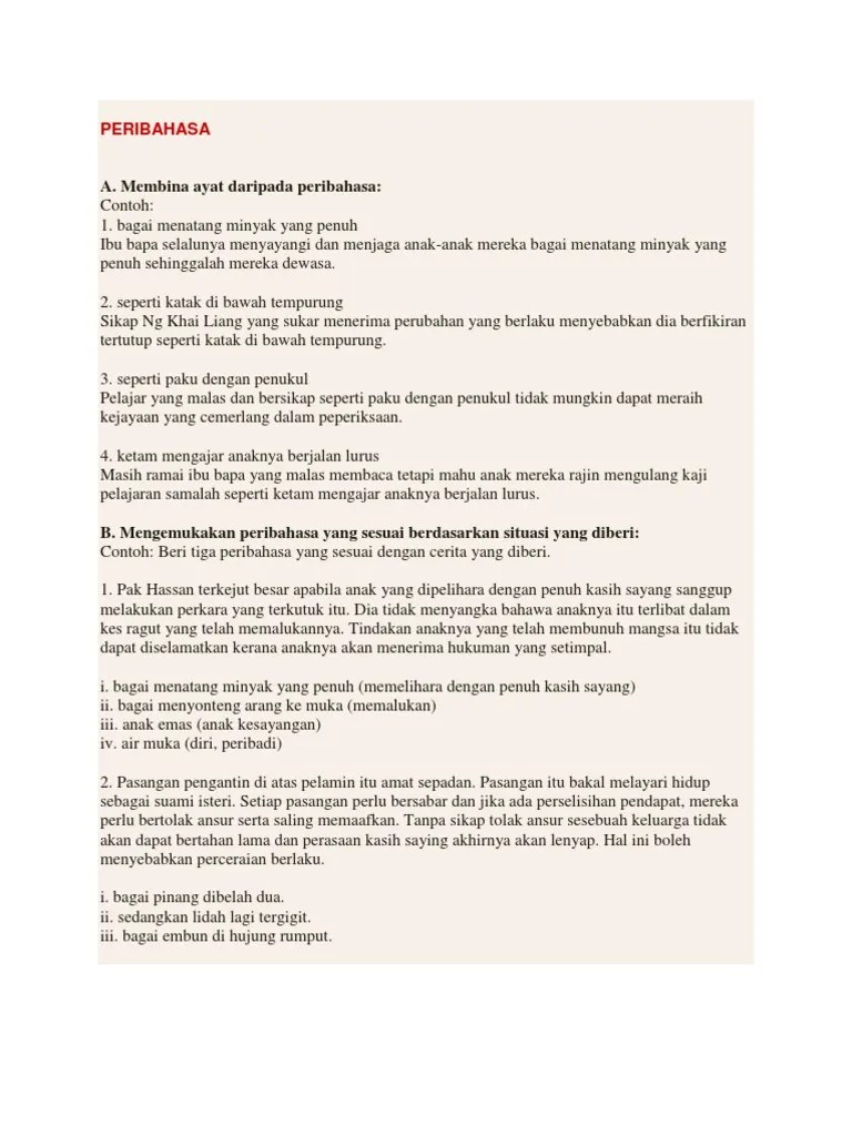 Mak piah memberitahu nana (saya) bahawa dia tidak ada bekalan makanan disebabkan banjir yang melanda kampungnya sudah sampai ke paras dada. Kita mesti selalu hormat dan sayang kepada ibu bapa kita. Menjaga ibu bapa sehingga ajal mereka sudah tiba. (ar2) berita tentang isu ini sering disiarkan di media massa sama ada … Dapat memanfaatkan jangan malu bertanya. Itulah maksud peribahasa bagaimana acuan,. Oct 03, 2016 · mak piah menyangka orang yang membuat panggilan telefon itu ialah anaknya, nana. Peribahasa "melentur buluh biarlah waktu rebungnya" sesuai untuk. Biarpun kita kaya, kebudian yang diberikan oleh mereka tidak dapat kita bayar. Ibu harap kamu betul cakap ibu itu. Nenekku menjagaku dengan penuh kasih sayang. Kesalahan dari segi kata kesalahan ini meliputi sebahagian besar jenis kata yang terdapat dalam bahasa melayu iaitu kata nama, kata kerja, kata adjektif, kata sendi, kata hubung, kata majmuk, kata ganda dan sebagainya.